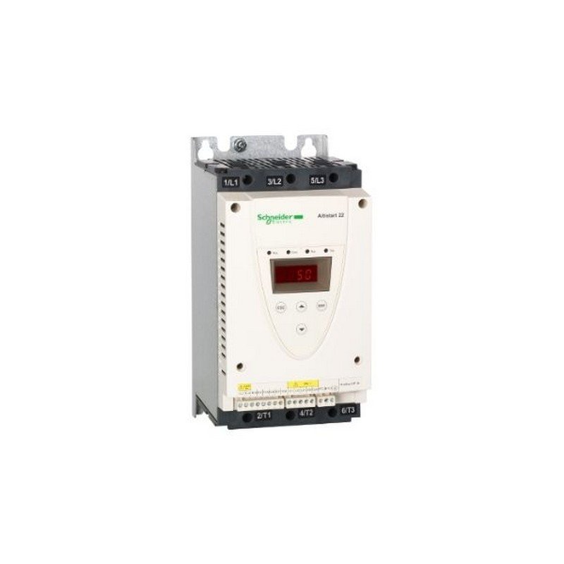 Este arrancador progresivo Altistart 22 puede alimentar motores asíncronos de 3 fases en la conexión de la línea de suministro. Posee un valor nominal de 17 A, una potencia nominal de 4 kW a 9 kW y una tensión nominal de 230 V a 500 V CA. Está diseñado para máquinas simples y complejas, como bombas centrífugas y de pistón, ventiladores, compresores de tornillo y equipos de manipulación de materiales. El formato delgado mejora la versatilidad; permite el montaje en marcos de cualquier tipo de máquinas. Cuenta con un bypass integrado que reduce el ruido y la disipación de calor. La compatibilidad con el software SoMove permite transferir configuraciones y ajustes fácilmente, lo que significa que los repuestos pueden instalarse rápidamente. Proporciona un arranque suave para la maquinaria, evitando tensiones mecánicas y alargando su vida útil.
