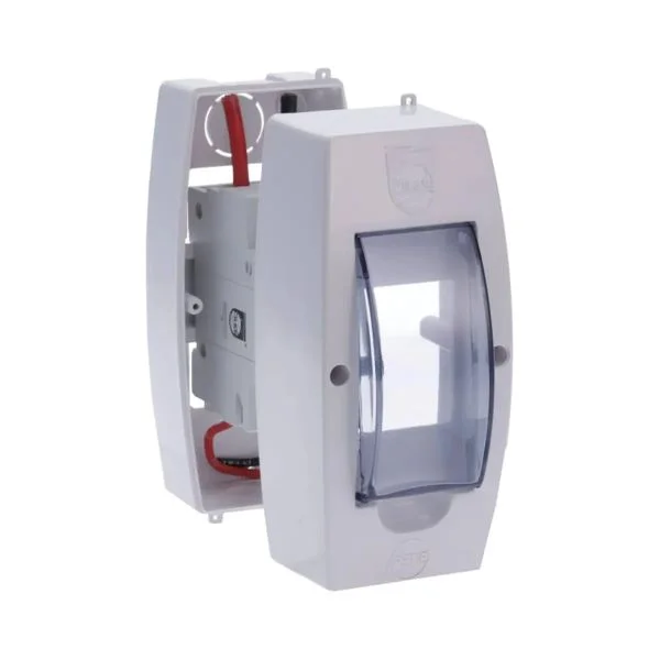 Caja de sobreponer tipo Riel para proteccion de 1 y 2 circuitos de material plastico con visor