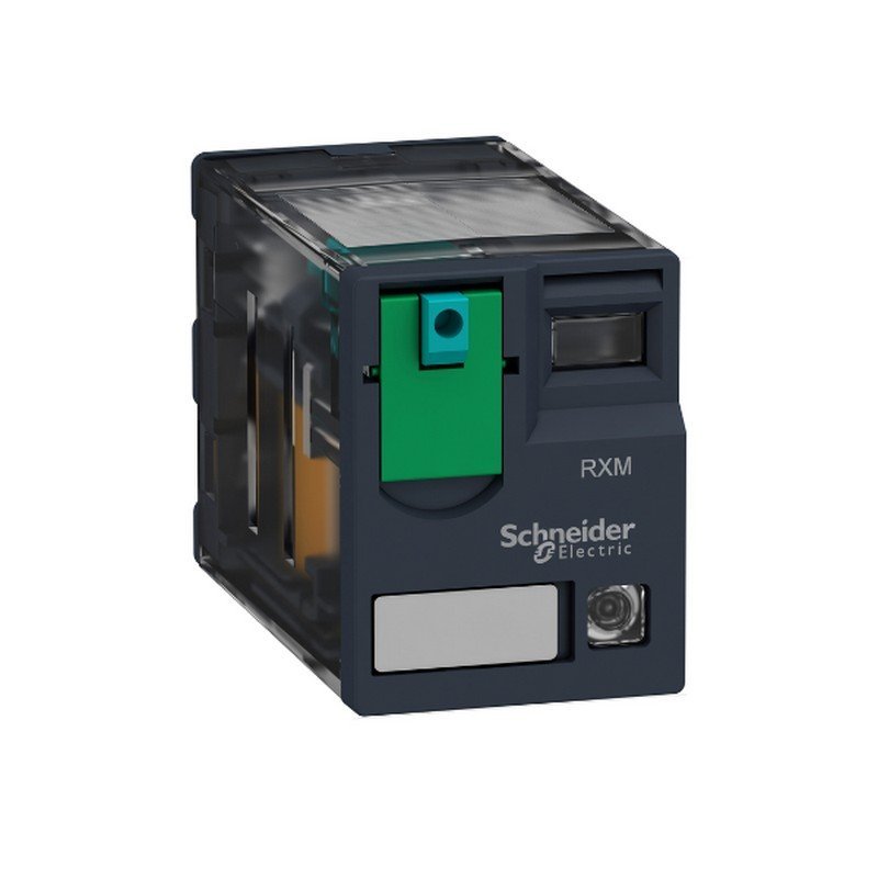 Los relés enchufables RXM son una serie de relés enchufables industriales diseñados para sistemas de automatización simples y complejos y disponibles con 2 contactos CO (12A), 3 CO (10A), 4 contactos CO (6A), 4 contactos CO (3A) de bajo nivel. Este es un relé enchufable que debe montarse en una toma RXZE. Es un relé de 3 C/O con clasificación de corriente de 10A, tensión del circuito de control de 24 V CC. También ofrece un botón de prueba bloqueable de un paso e indicador mecánico para el estado del contacto. El botón de prueba se activa momentáneamente al presionar el botón azul en la parte frontal y se bloquea al voltear la parte verde. El indicador mecánico se encuentra junto al botón de prueba, donde un indicador naranja indica el estado del contacto del relevador. Un LED verde en la parte frontal se iluminará cuando el relé esté encendido. Pantalla de estado con LED: Señales claras durante el día y la noche. Su diseño es apto para máquinas industriales, embalaje, textil, HVAC, paneles de control de automatización, tableros de baja/media tensión, controles de motor, interfaces PLC, fuentes de alimentación, edificios o equipo médico, controles de iluminación.