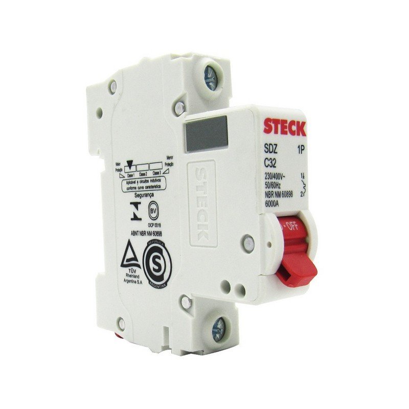 Interruptor taco Riel STECK, Monopolar de 63A, 6kA y 240V, protege tanto los equipos conectados como las instalaciones eléctricas, asegurando un funcionamiento seguro y eficiente.