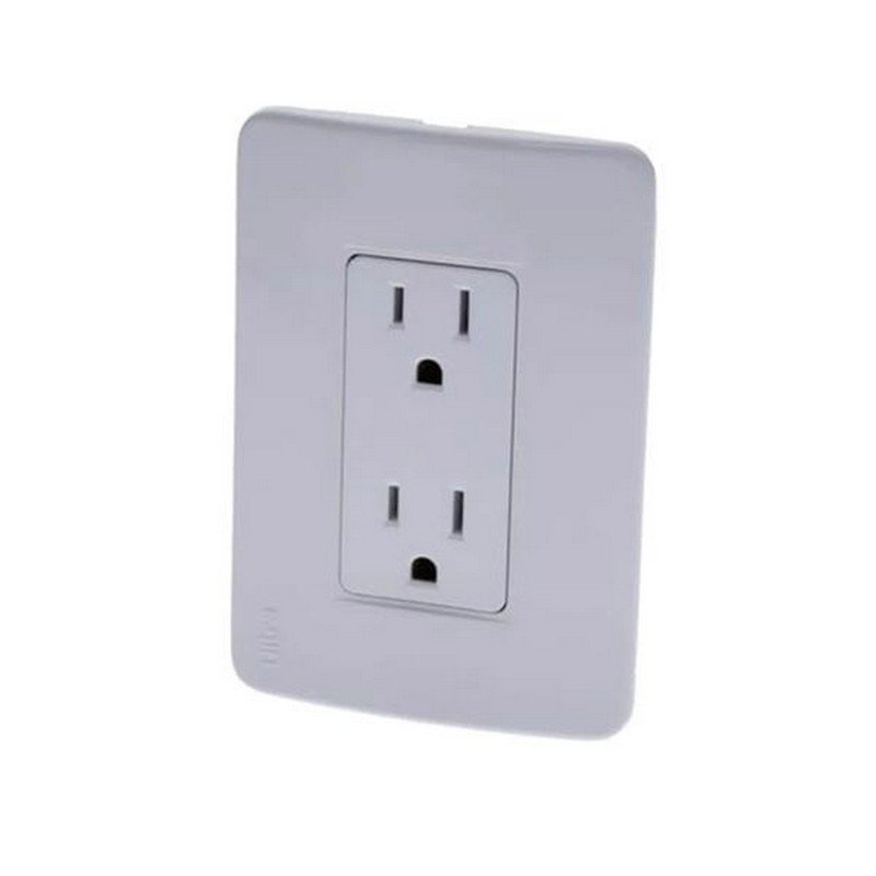 Tomacorriente doble integral, ideal para instalaciones eléctricas de baja tensión, para usos en redes domiciliarias, comerciales o institucionales.